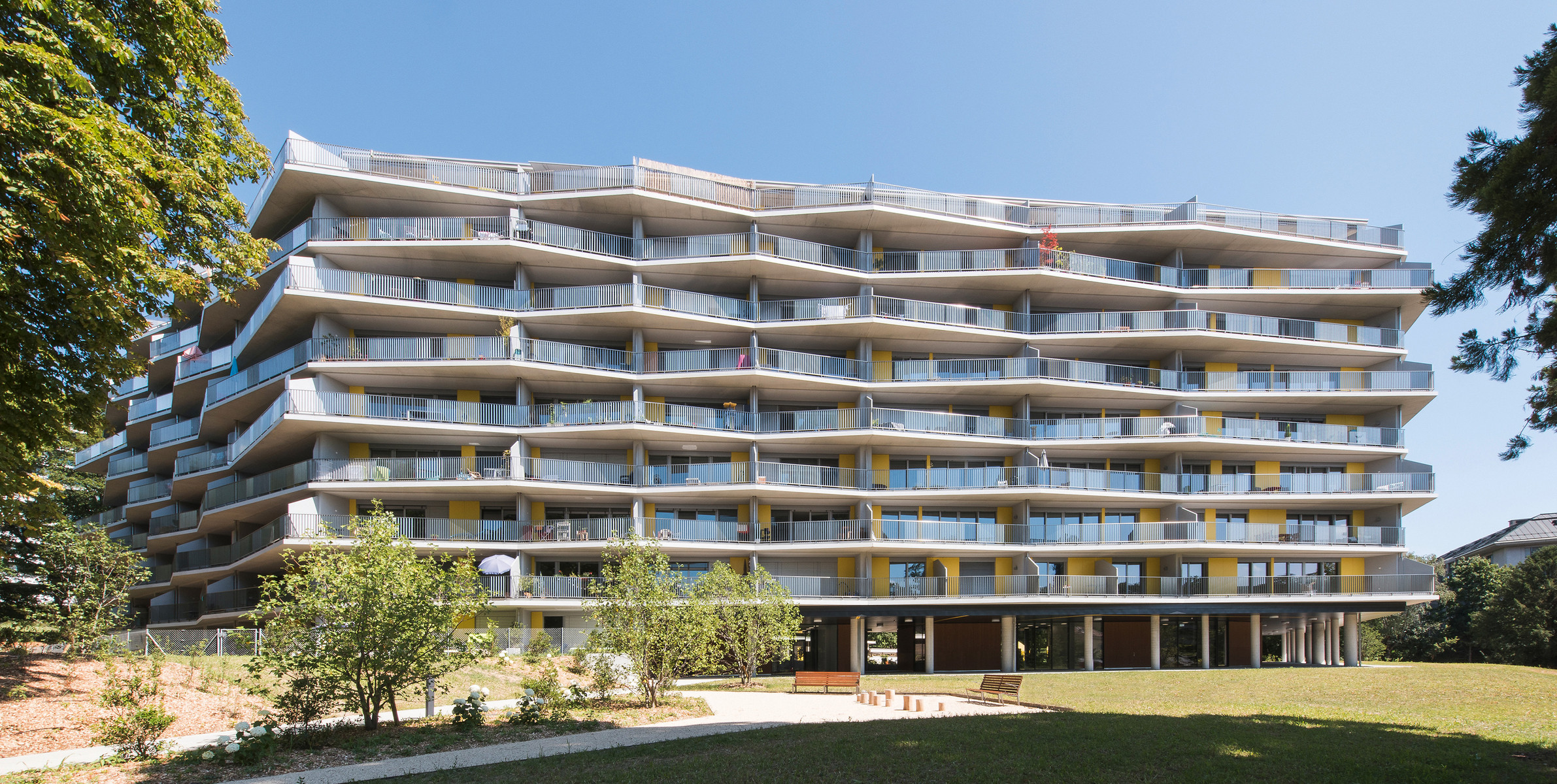 Le bâtiment imaginé par le bureau JUCKER s’inscrit dans un registre de développement durable : ce bâtiment labellisé Minergie® est indépendant en énergie fossiles. Des sondes géothermiques permettent un chauffage naturel de l’eau chaude destinée au chauffage et au sanitaire. Ce dispositif est complété par des pompes à chaleur ainsi qu’une batterie de panneaux solaires thermiques en toiture. Un système de géocooling permet de rendre en été les calories au sol et rafraichit les logements pendant la période estivale.